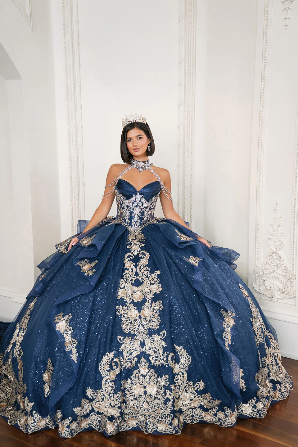 Un vestido clásico de princesa pensado para vivir uno de los sueños más grandes de tu vida. Sus delicados detalles dorados hacen que brilles con elegancia, mientras su silueta de gala te envuelve para que te sientas como una verdadera princesa en tu gran día. Cada paso se vive con ilusión, emoción y magia, creando un recuerdo que quedará para siempre en tu corazón.