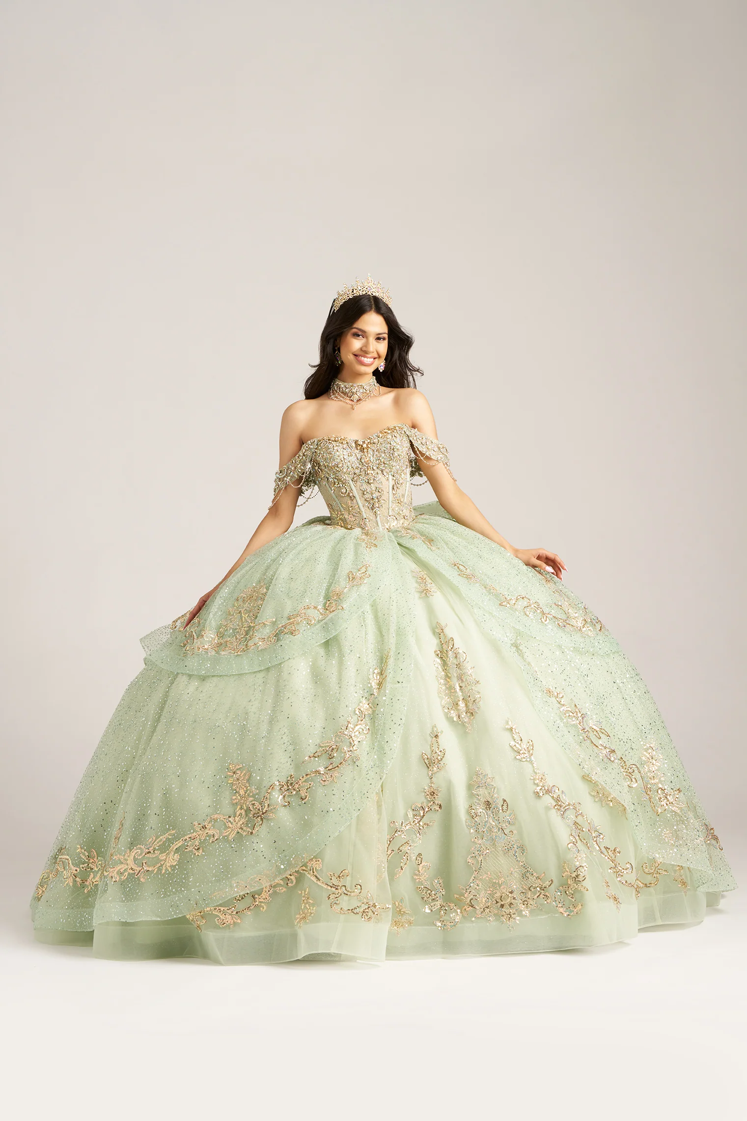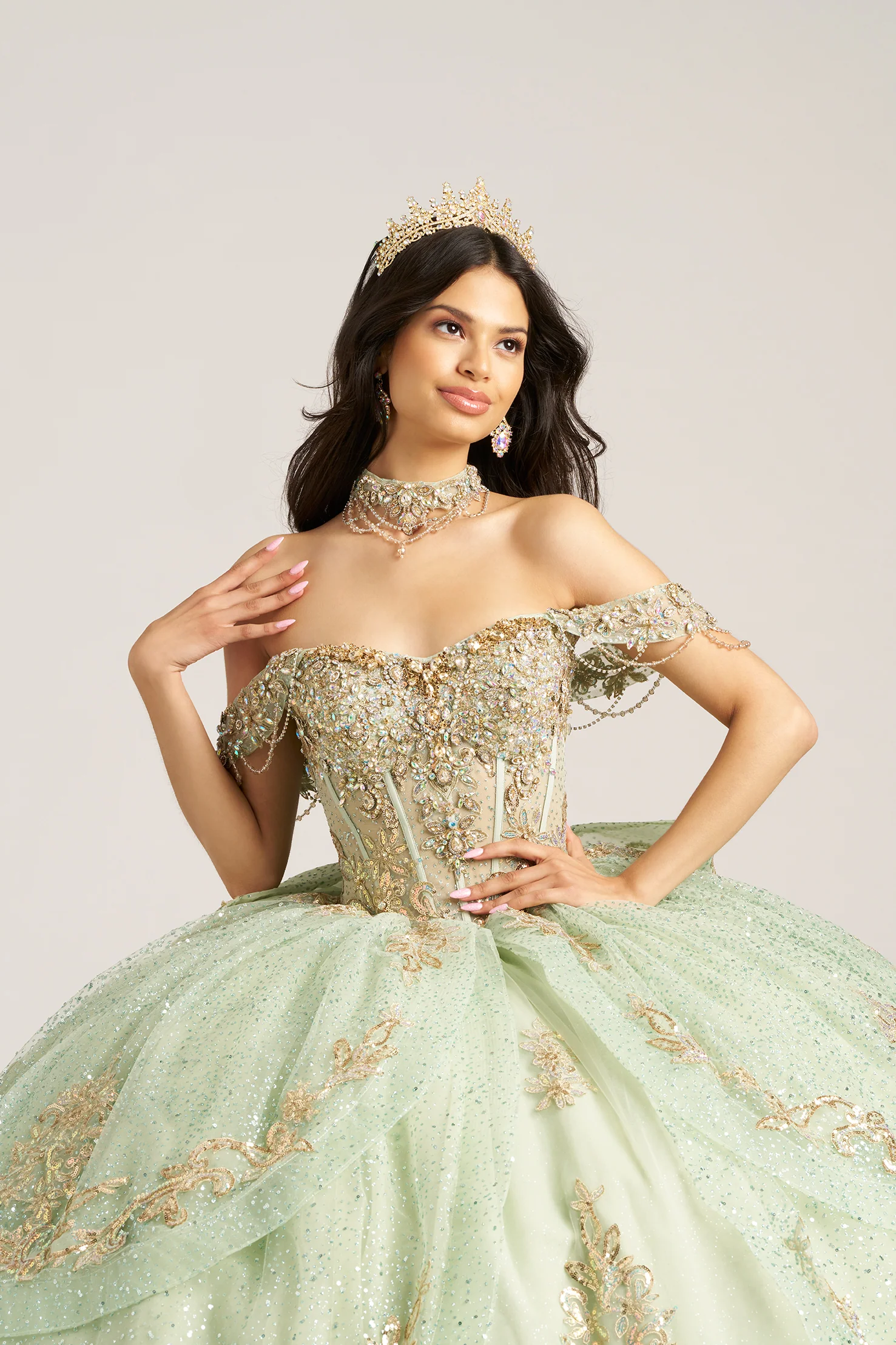 Un vestido que invita a soñar y a vivir la magia de tu gran día como una verdadera princesa. Su tono verde lo hace perfecto para una temática inspirada en La Princesa y el Sapo, lleno de encanto, fantasía y elegancia. Al usarlo te sentirás emocionada, especial y protagonista, con un estilo opulento que se mueve contigo y hace que cada momento de tu fiesta se sienta único y memorable.