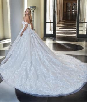 El vestido de fiesta LENA encarna todo lo que significa ser una reina moderna. Una exuberante silueta de princesa tradicional de encaje se encuentra con un escote recto contemporáneo y fresco para crear esta verdadera obra maestra nupcial. ¿Otra cosa que nos encanta del vestido de LENA? Las tres opciones de escote: correas, fuera del hombro y sin tirantes.
