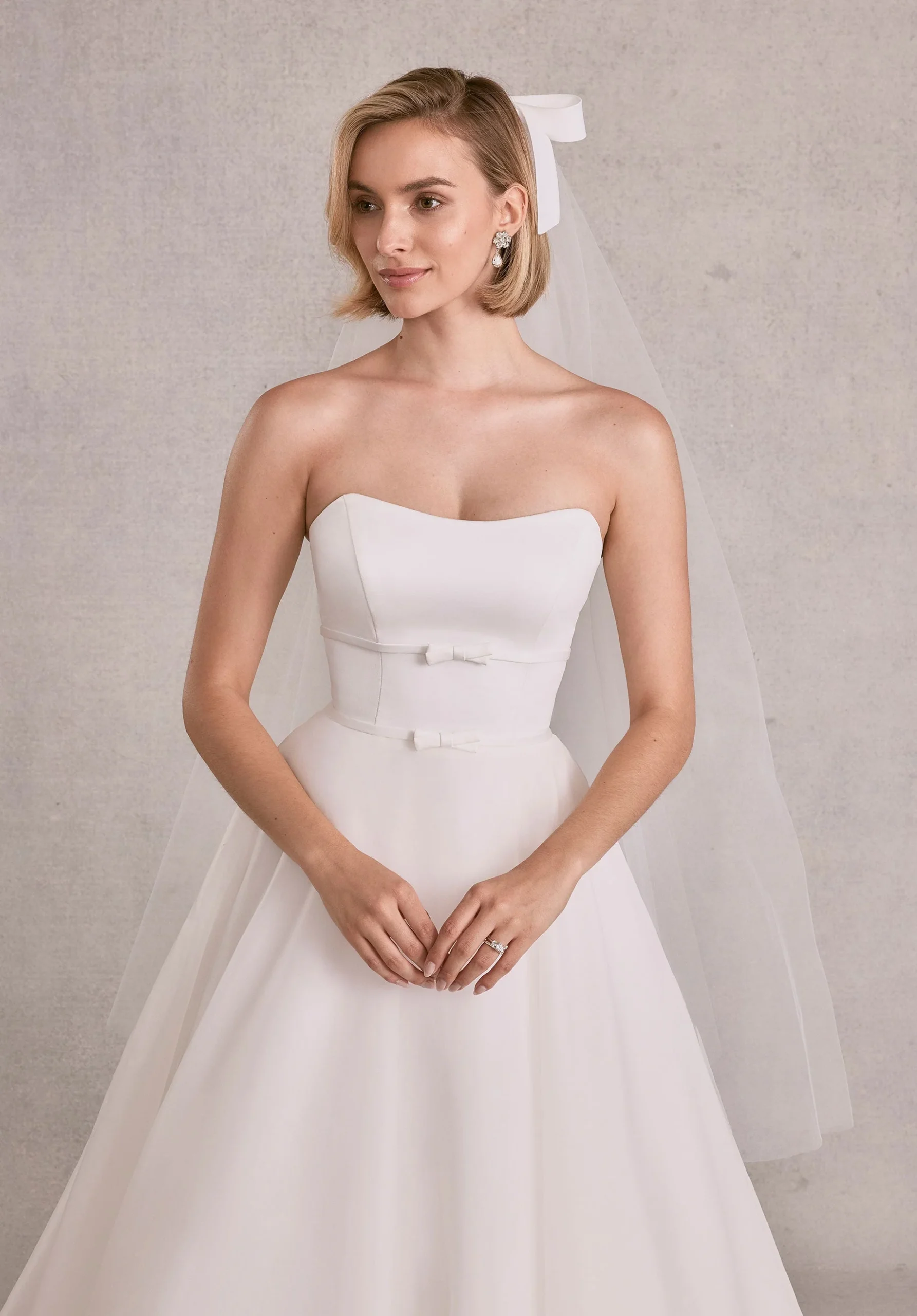 Hay detalles que completan tu look y hacen inolvidable el momento… y este modelo de velo corto es uno de ellos. Imagina caminar hacia el altar sintiéndote ligera, segura y con ese toque perfecto de elegancia que roba miradas. Diseñado para resaltar tu estilo y tu esencia. Con él lucirás espectacular, avanzarás radiante, y comenzarás tu historia de amor con una imagen que quedará para siempre.