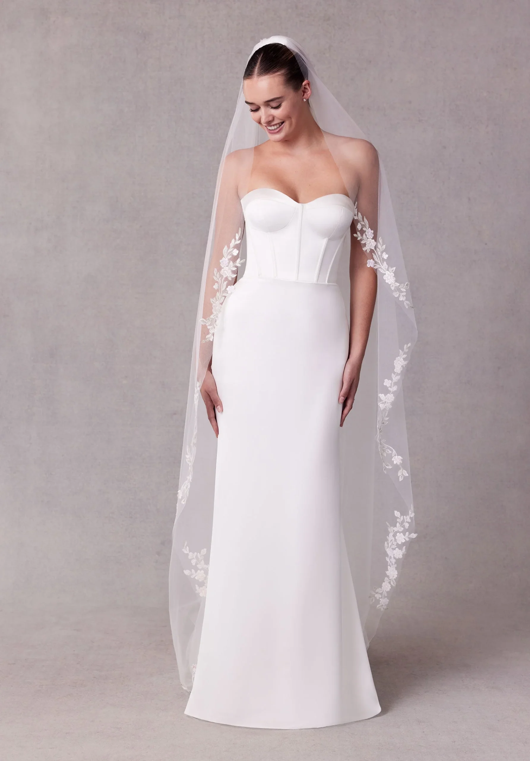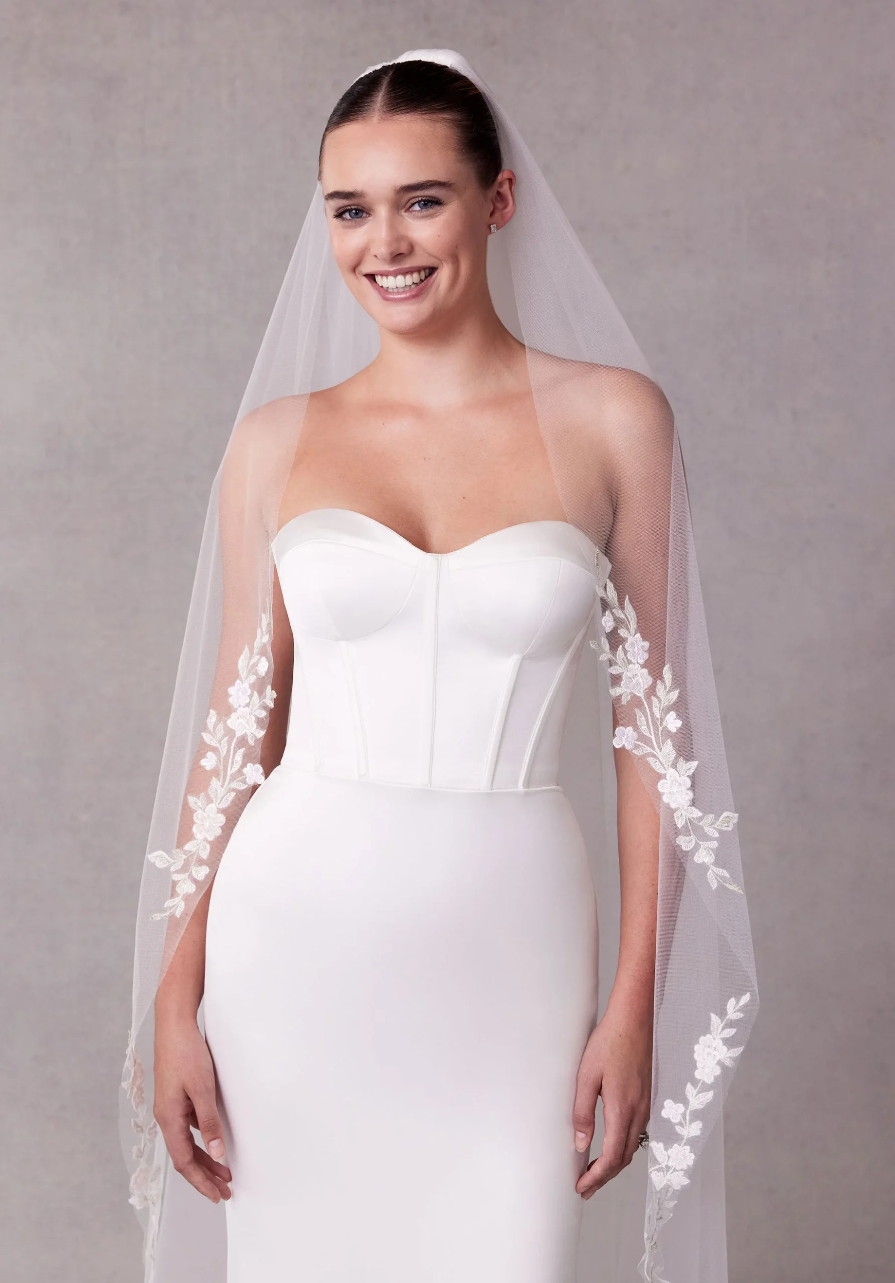 Hay detalles que convierten tu look en un recuerdo eterno… y este modelo de velo largo es uno de ellos. Imagina caminar hacia el altar con el velo acompañando cada paso, mientras las miradas se llenan de emoción. Diseñado para hacerte sentir única, segura y profundamente especial. Con él lucirás espectacular, avanzarás radiante, y vivirás uno de los momentos más mágicos de tu historia de amor.